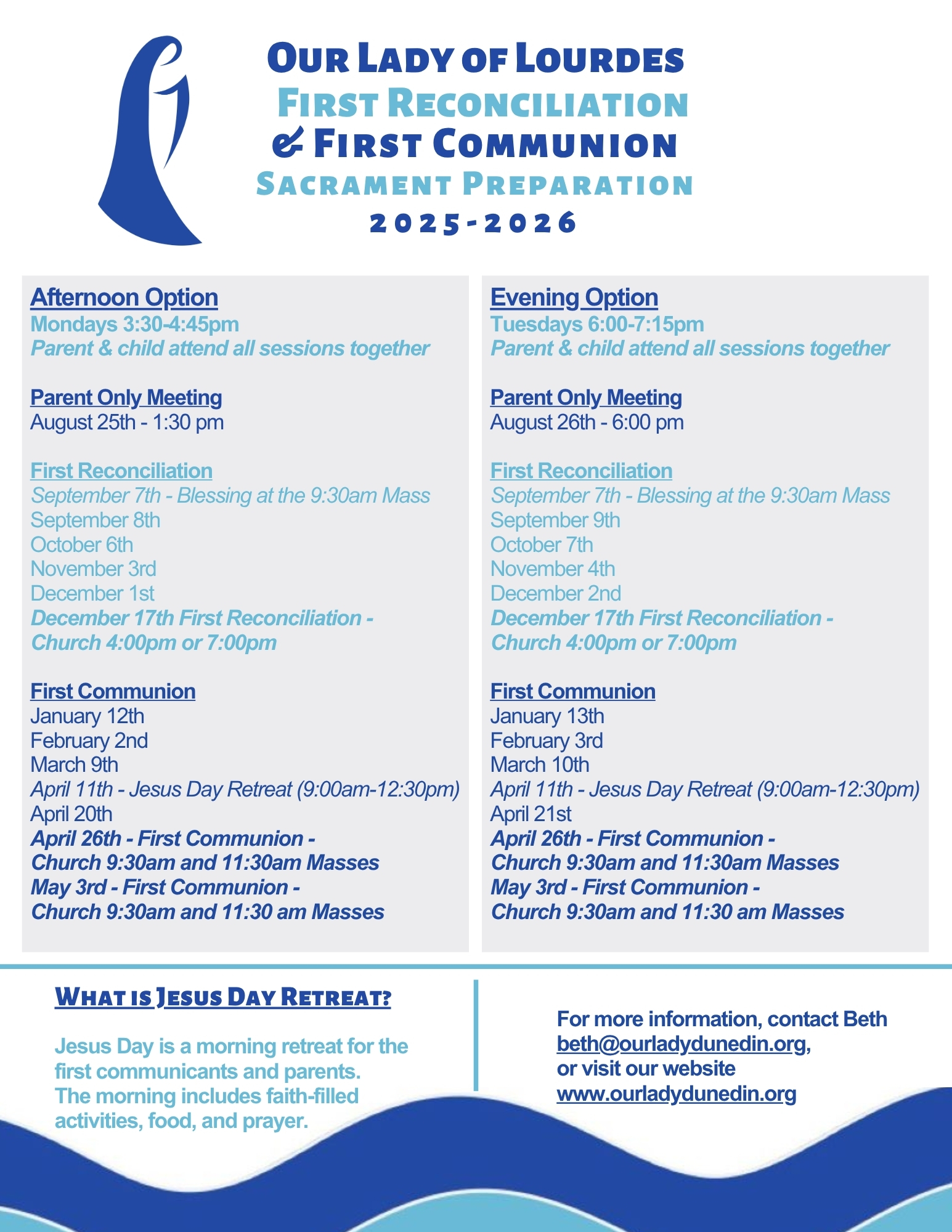 If you have any questions, contact Beth Barringer, Director of Faith Formation & Youth.